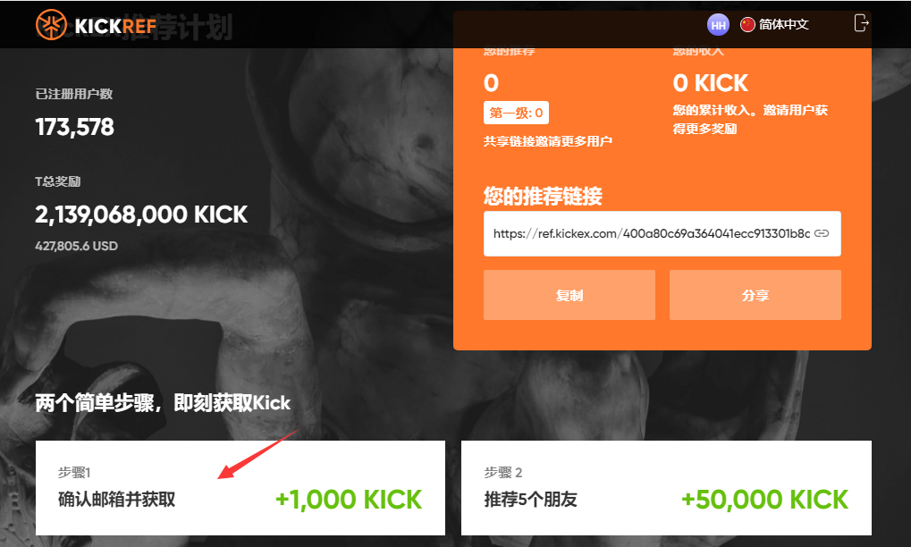 再去到https://ref.kickex.com/referral-program 看看你的收入。是不是多了一千个。这就是撸这个币的全部过程 。