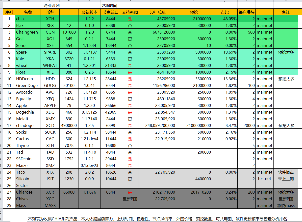 Chia系山寨币集合(风险自担),共用Chia农田挖掘(持续更新)