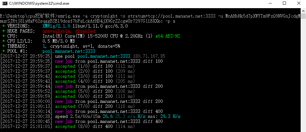 下载地址:https://github.com/xmrig/xmrig/releases/download/v2.4.3/xmrig-2.4.3-gcc-win64.zip