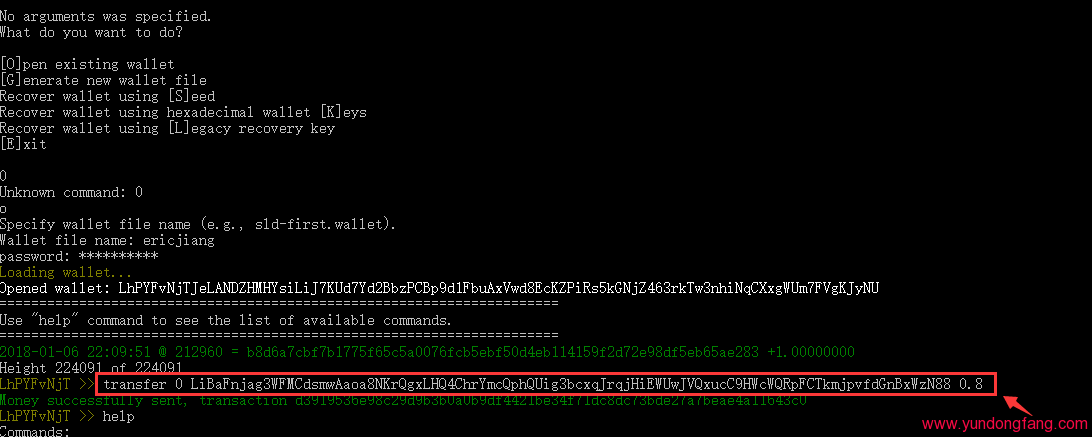 例如:transfer 0 RA56YpFvmq2haGW9GdY2SaErEoVdfA3kd1yt2jvAUXjEXF5KsEpFgNbeX56xtpBDWLQULRG5ksiYW5RXDsEETikh1nittD3gz 1 这是对这个钱包转一个币,据说会快一点。